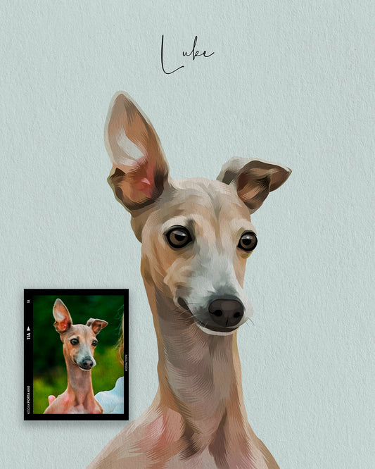 Olvídate de los cuadros genéricos: la estrella de tu casa está justo a tu lado. Convierte a tu mejor amigo en una obra de arte hecha a mano, con todo el cariño y detalle que se merece.